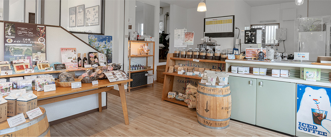 土木事業部に先立つ2008年に、弊社コーヒー事業部はスタートしました。沖永良部島の自社農園で国産コーヒーの目標収穫量1トンを達成し、鹿児島大学と共同研究で、特許を取得した独自の焙煎法で健康効果の高いコーヒーを製品化しました。